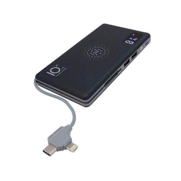Charming Wireless Power Bank 10000MAH Fast Portable Mobile Phone External Battery Charger with 3-IN-1 Cable & LCD Screen Images |